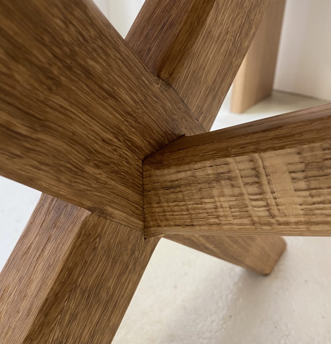 Et spisebord bruges dagligt, og skal derfor kunne holde til lidt af hvert, hvilket René selvfølgelig har tænkt ind i sine egetræsborde: ”Overfladen tilføres først noget dybdegående linolie, bagefter får den en voksbehandling, som poleres, og til sidst kommer der en overfladeolie på med 2% lak i. Jeg gør ekstremt meget ud af overfladen, og den er nærmest uimodtagelig over for, at man spilder rødvin, mælk eller andet,” siger René. I hans showroom i Gilleleje og Islev udstiller han forskellige borde og trætyper – begge showrooms er åbent efter aftale. På hjemmesiden samplewood.com kan man se mere om René Theis og hans mange skønne plankeborde.
