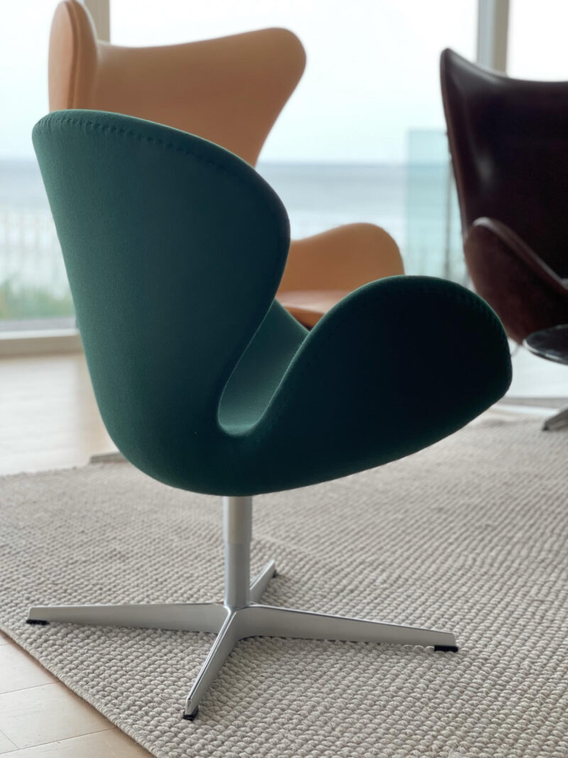 ”Vi laver gerne alle slags opgaver inden for møbelpolstring og ombetrækning og er specialister i Arne Jacobsen og hans fantastiske Syver stol, Svanen og Ægget. Poul Kjærholm, Børge Mogensen, Hans J. Wegner, Erik Jørgensen, Nanna Ditzel, Finn Juhl m.fl. er også nogle af de store danske designere, vi meget gerne arbejder med og har stor erfaring i,” fortæller Viggo, der også påpeger, at de faktisk er så vilde med de danske designmøbler, at de ikke kan nøjes med at lave en ombetrækning af møblerne. De tilbyder derfor også salg af nye og brugte designmøbler– blandt andet Syver stolen, Ægget og Svanen.